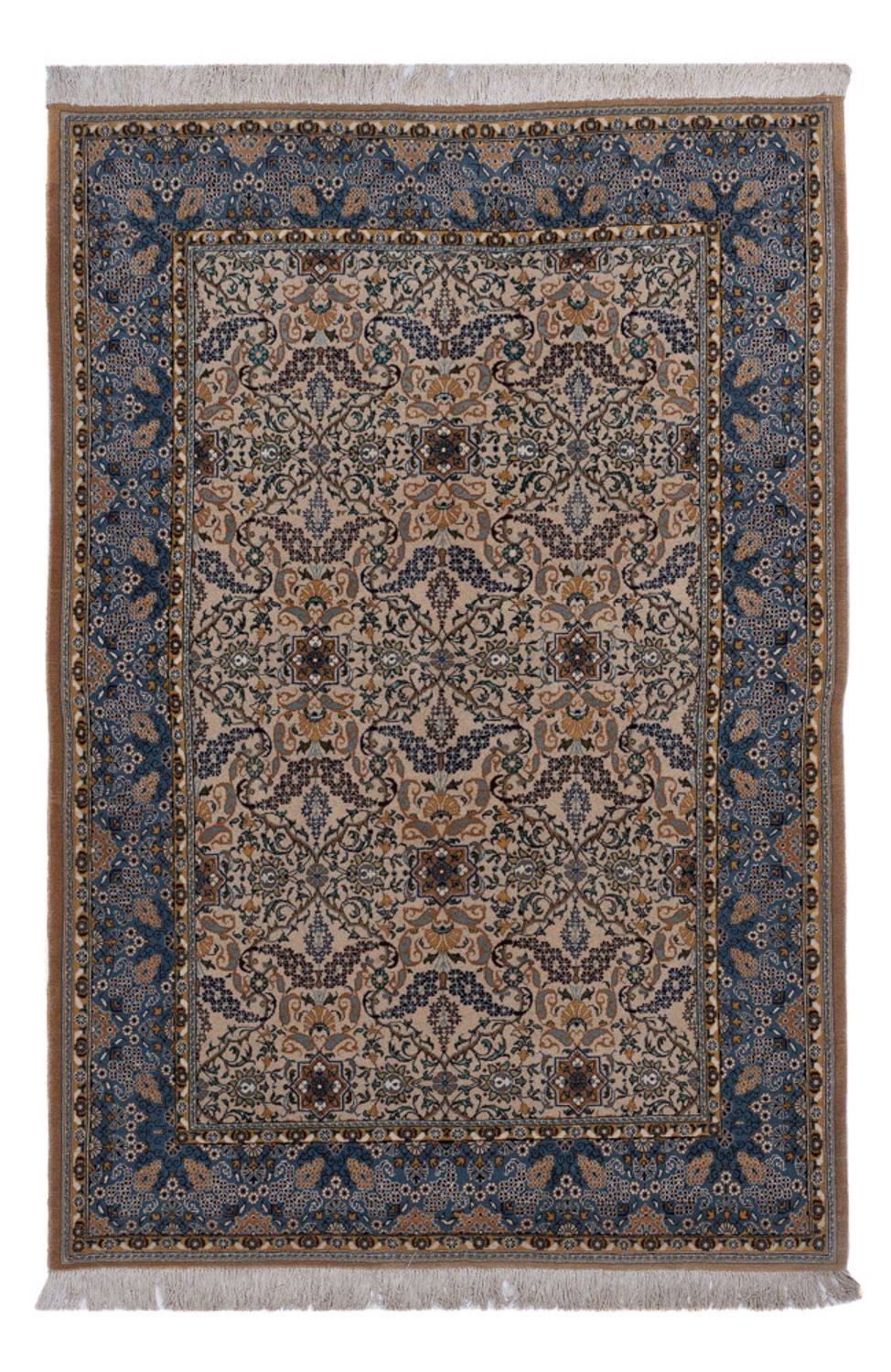 Disse vakre teppene er knyttet i den hellige byen Ghom i det sentrale Persia. Ghom-teppet er et av de mest eksklusive knyttede kunstverkene i Orienten. Den finnes i tre varianter: Korkull på bomull, korkull med silke på bomull og silke på silke. Selv Ghom-teppevarianten korkull på bomull er enestående. Korkull kommer fra klipping av lammets hals. Den er myk og fet, ekstremt smussavvisende og ekstremt slitesterk. Spesielt tynne tråder kan spinnes av korkull, som gir en fin veving i tette knuter. De andre Ghom-teppevariantene taler for seg selv. Jo mer silke et teppe har, jo finere knyting, jo mer detaljert mønster, jo høyere kvalitet på teppet.