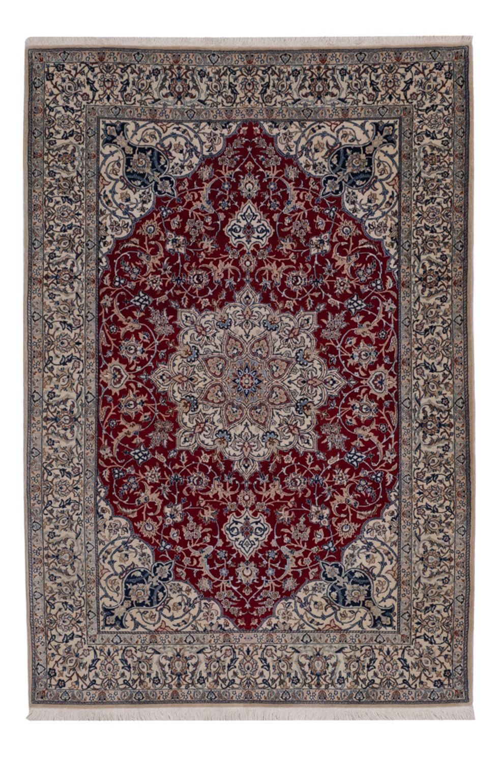 Dette vakre og sjeldent fint vevde persiske teppet - Nain - Premium tilhører det høyeste kvalitetsnivået 4 med omtrent 890 000 til 1 000 000 knuter per kvadratmeter. Den fine Nain 6La skylder sin berømmelse til sin opprinnelse. Det regnes i hele Orienten som et persisk teppe av særlig høy kvalitet. Nain-tepper er knyttet med enestående finhet. Den beste, fløyelsaktig korkull brukes vanligvis som haugmateriale, og silke brukes alltid slik at et nøyaktig mønster av medaljonger og all-over design kan utføres. Nain er delt inn i 4 kvalitetsnivåer, som er angitt i "La". 4La, 6La, 9La, 12La. Dette er en kvalitetsbetegnelse og refererer til antall trådlag i hver varptråd. Jo lavere tallet er angitt, jo finere og tettere er teppet. Nains er blant de vakreste i verden. De er veldig populære blant samlere. På grunn av sin enkle eleganse passer Nains også inn i moderne interiør.