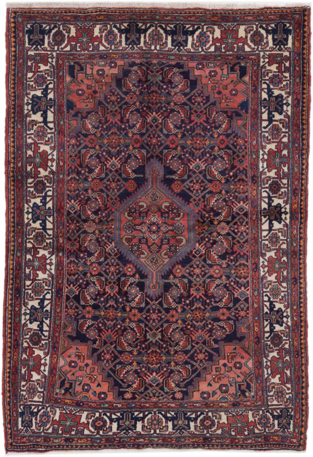 Hamedan - Fortryllende smukt, særligt robust. Denne Hamedan er af den bedste kvalitet/god kvalitet. Rustik charme, varme naturtoner i indigoblå og rød og særlig holdbarhed kendetegner Hamedan. Håndspundet iransk højlandsuld fra Iran giver det en blød glans. Den "tyrkiske knude" giver den robuste overflade. Hamedans anses for at være de enkleste persiske tæpper. De er traditionelt håndknyttede i landsbyerne omkring den iranske by Hamedan. Hvert tæppe er et fantasifuldt individuelt stykke. Små uregelmæssigheder i mønstret viser dette. Hamedans er smukke brugstæpper med et attraktivt pris-ydelsesforhold.